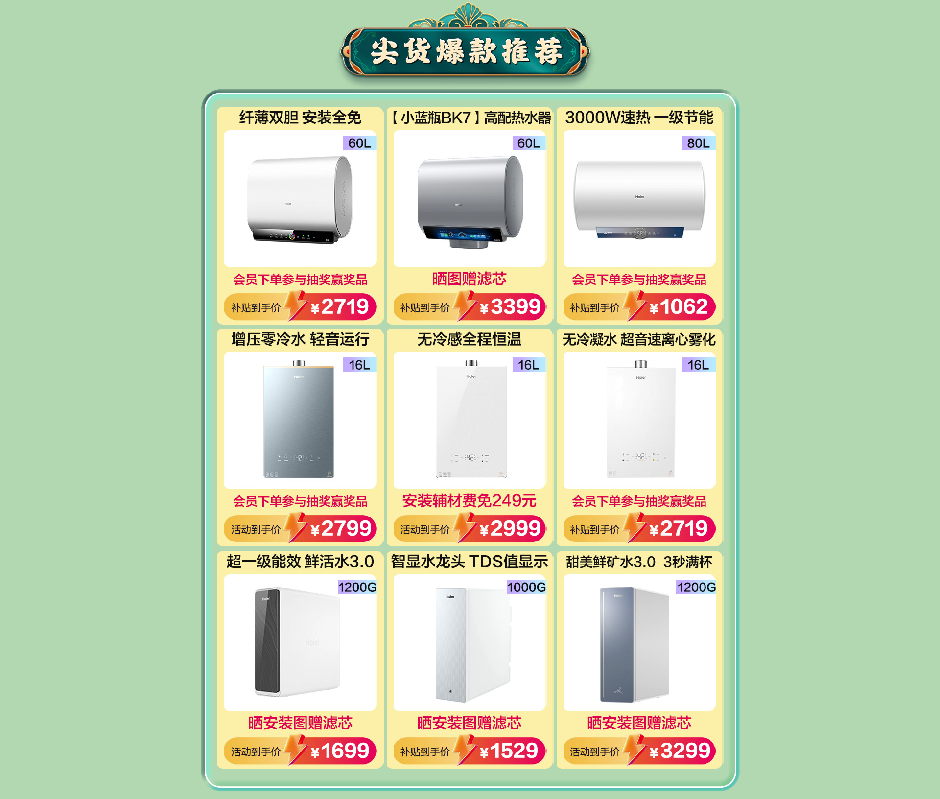 海尔净水器套购 厨下净水器8H11+燃气热水器16ECOU1 全时鲜活无陈水,长效RO膜;冷凝式,双增压零冷水,即开即热
