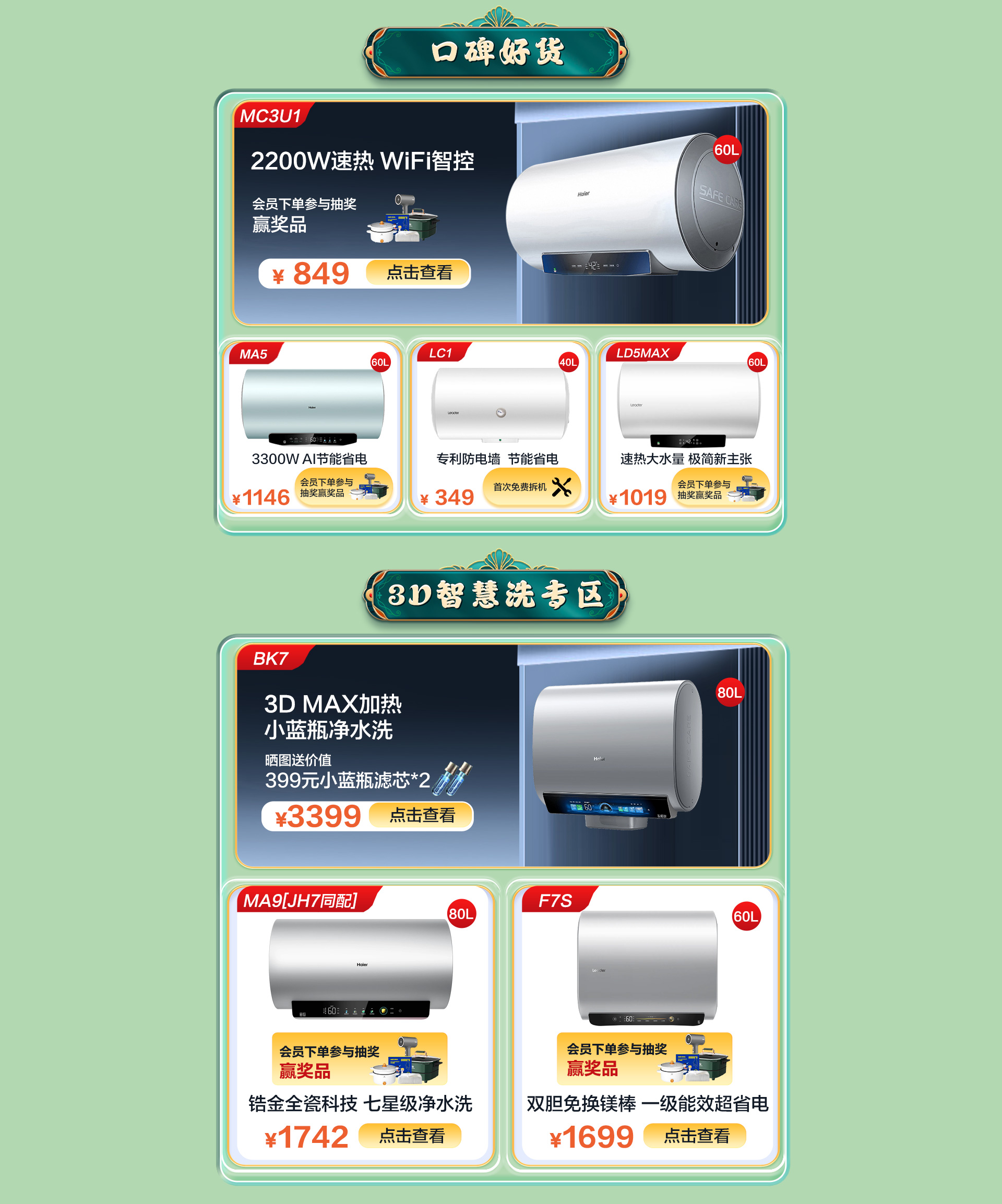 [热卖榜单√]Haier/海尔电热水器EC6002-MG(U1)60升 3000W变频速热 WIFI控制 金刚无缝胆