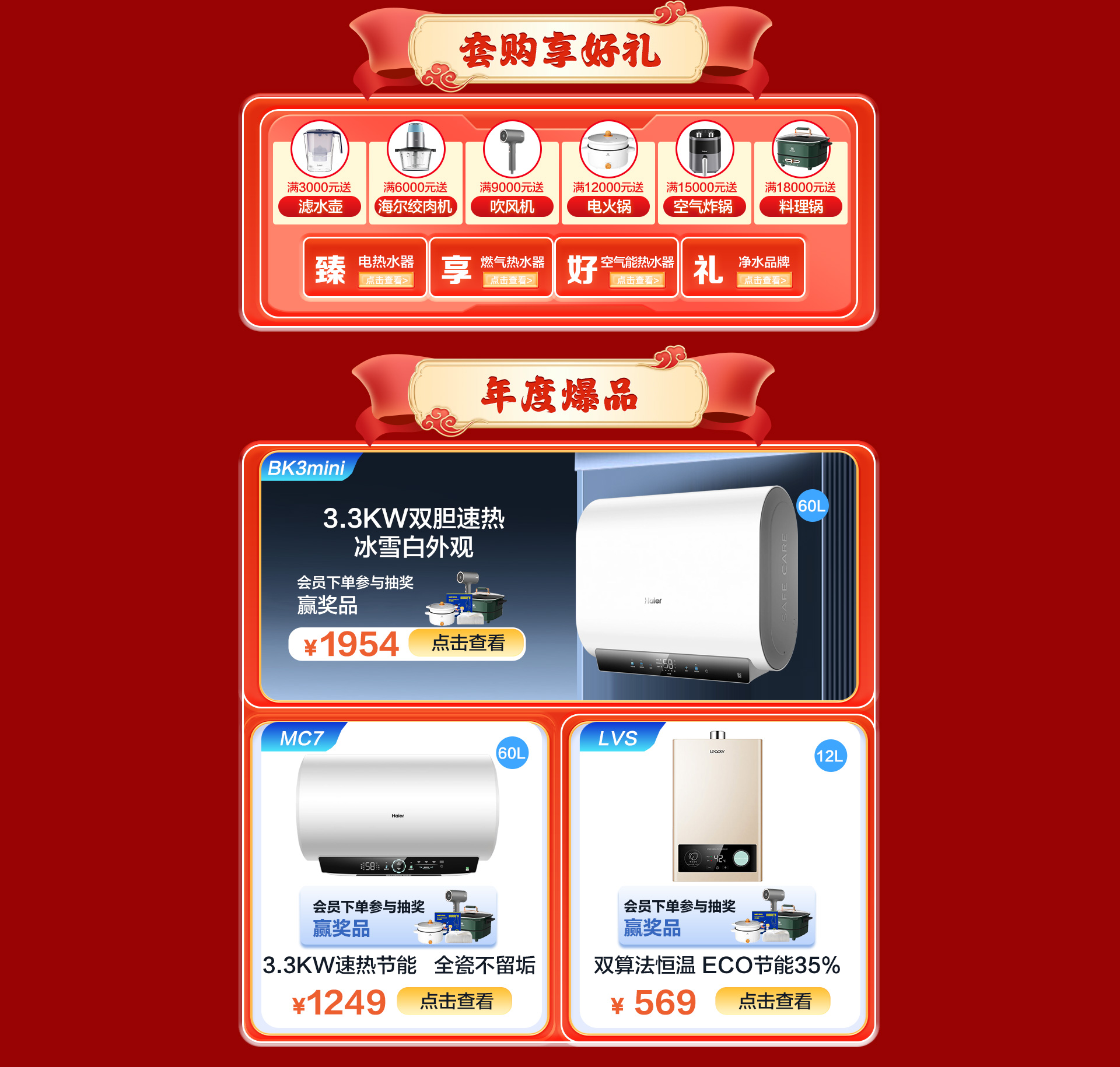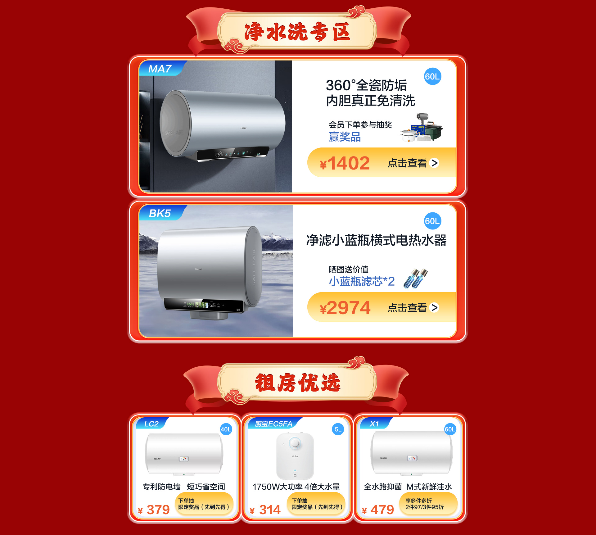海尔(Haier)优惠套餐 电热水器EC6001-MC3U1+前置净水器HPF37 家用卫生间储水热水器 全屋自来水过滤