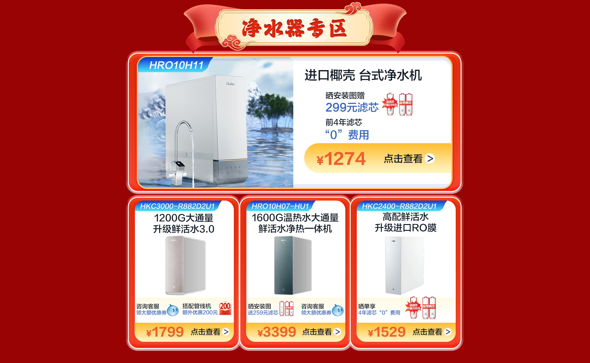 海尔净水器套购 厨下净水器8H11+燃气热水器16ECOU1 全时鲜活无陈水,长效RO膜;冷凝式,双增压零冷水,即开即热