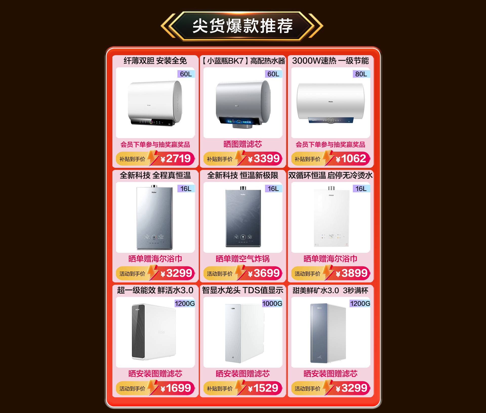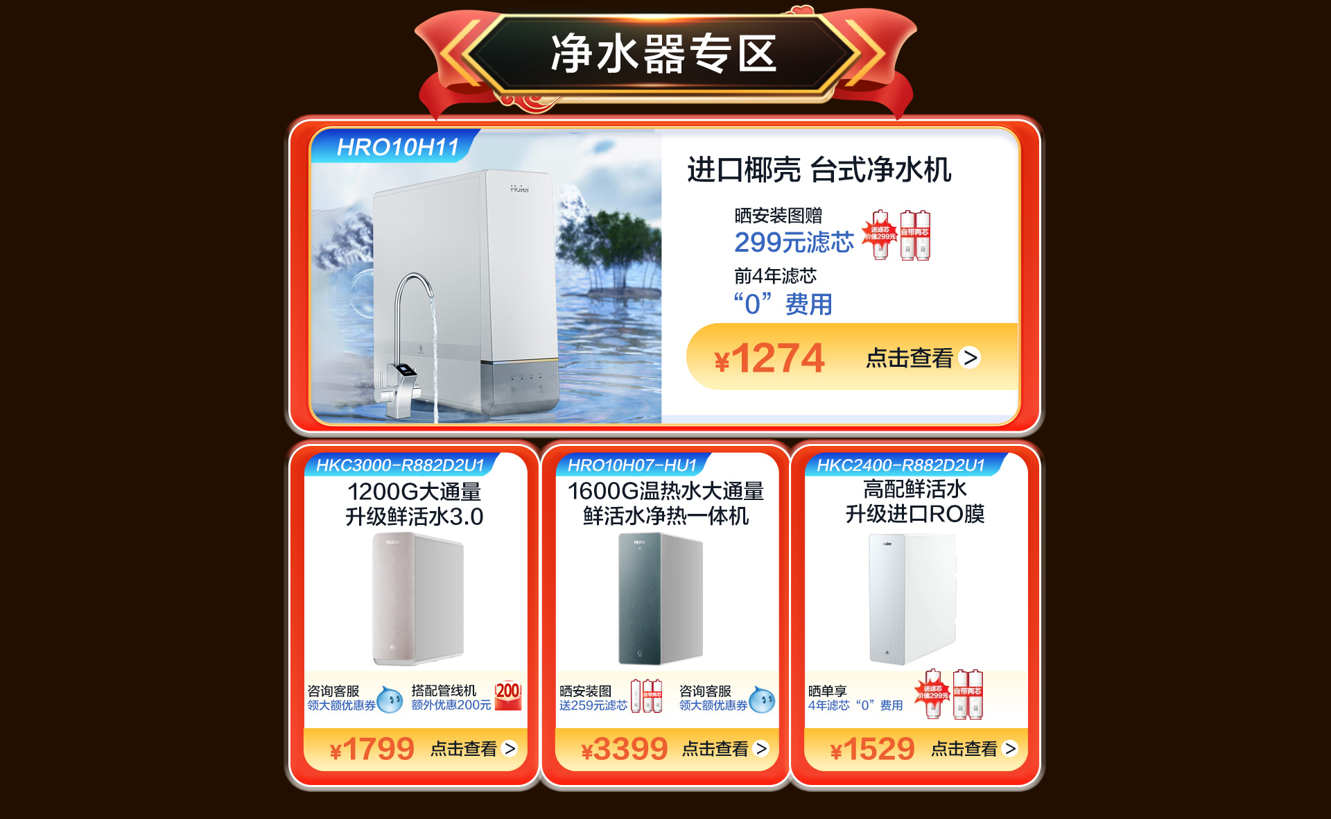 海尔净水器套购 厨下净水器8H11+燃气热水器16ECOU1 全时鲜活无陈水,长效RO膜;冷凝式,双增压零冷水,即开即热
