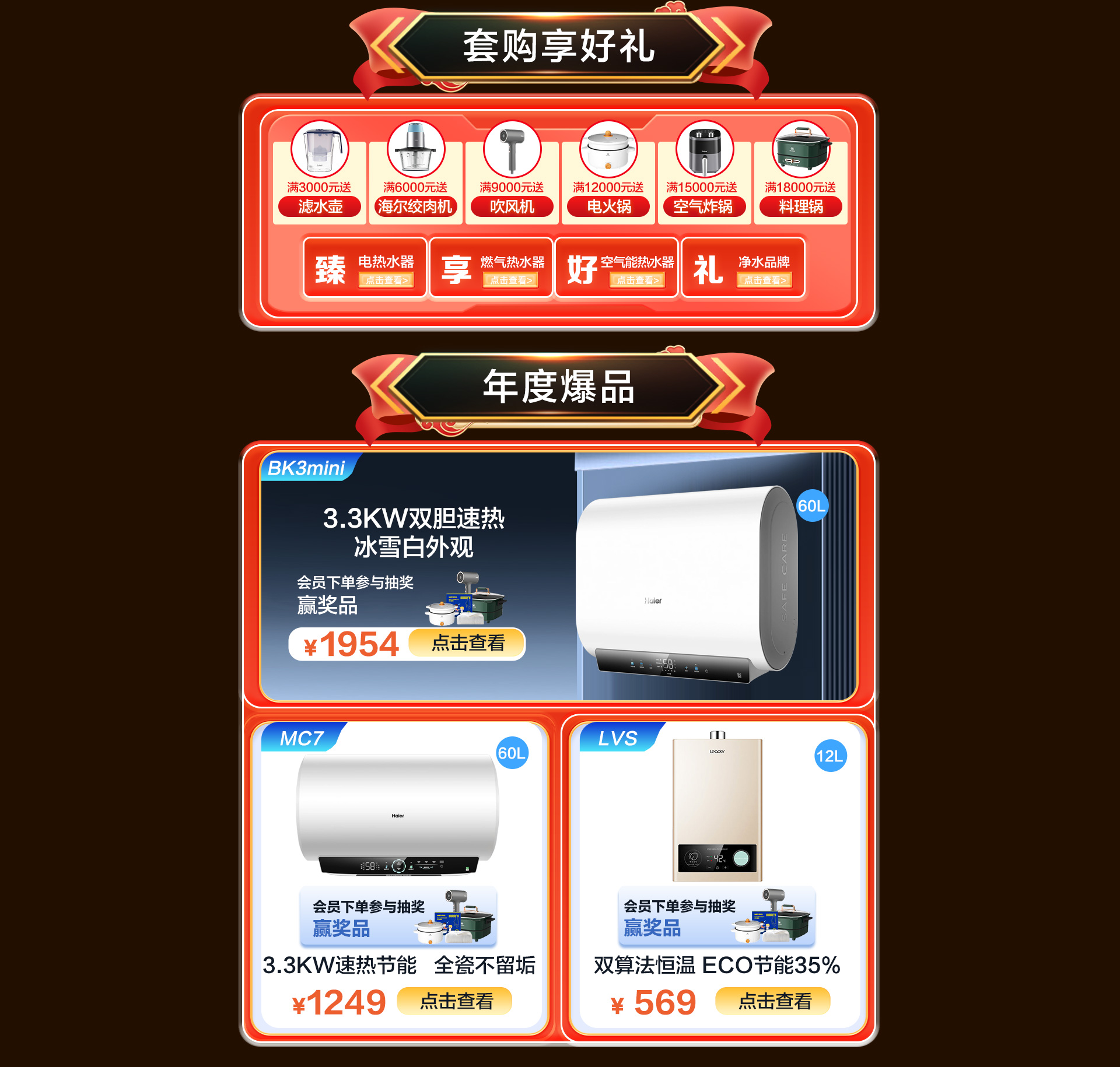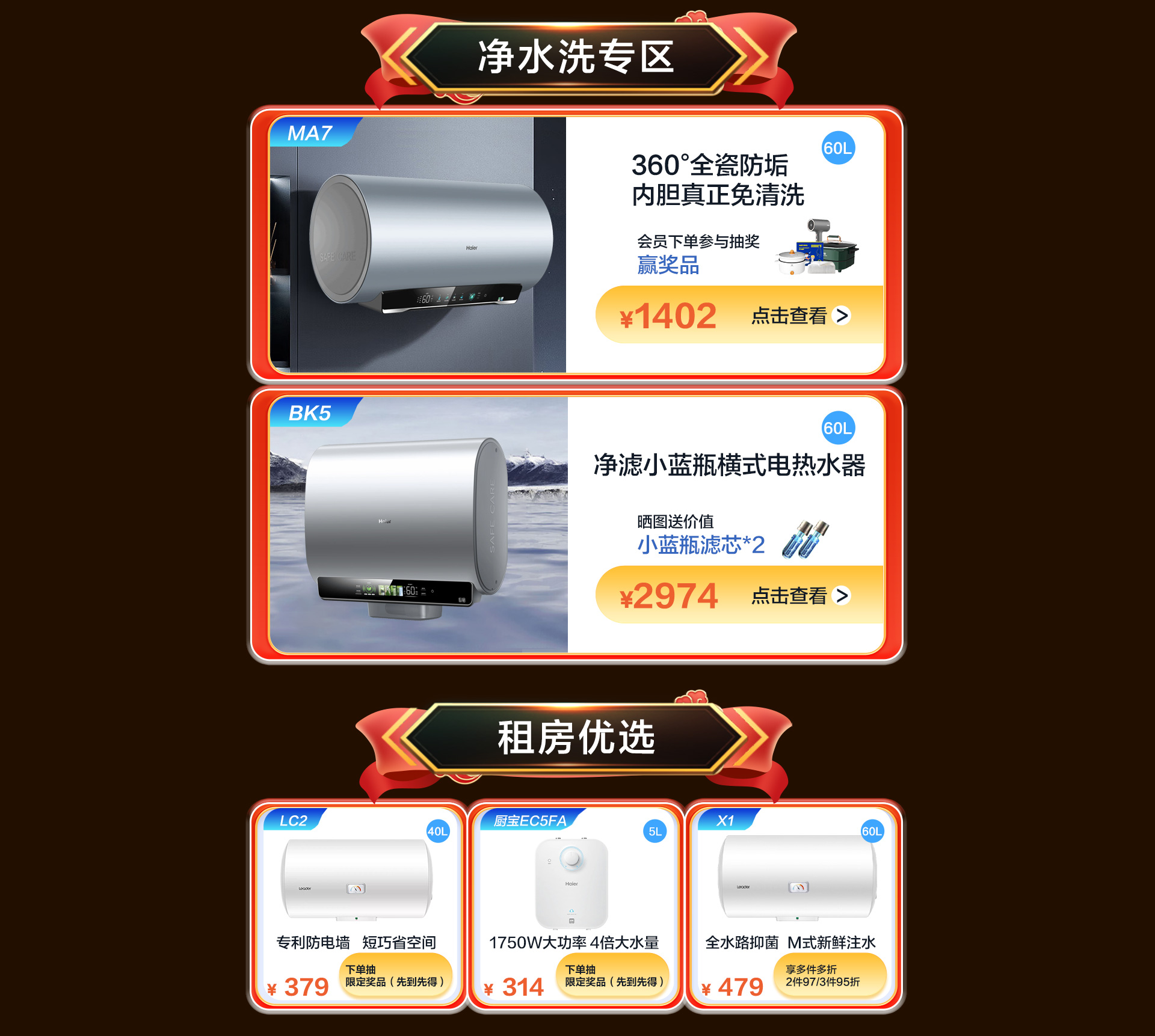 海尔(Haier)优惠套餐 电热水器EC6001-MC3U1+前置净水器HPF37 家用卫生间储水热水器 全屋自来水过滤