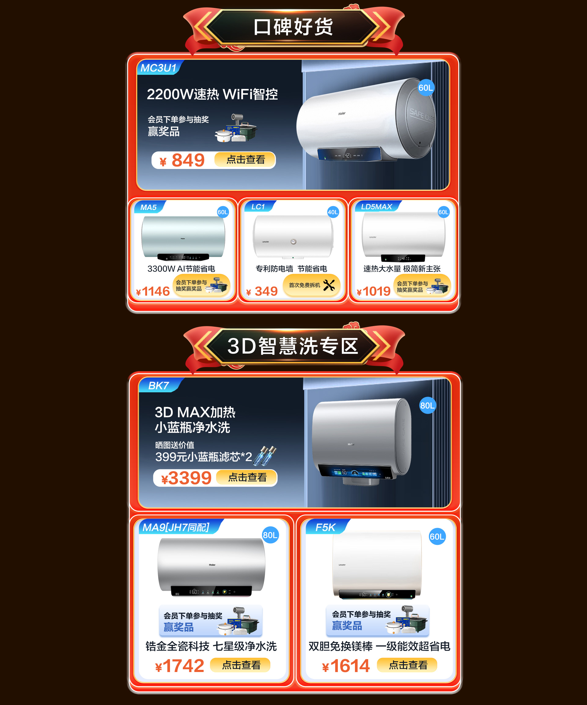 [热卖榜单√]Haier/海尔电热水器EC6002-MG(U1)60升 3000W变频速热 WIFI控制 金刚无缝胆