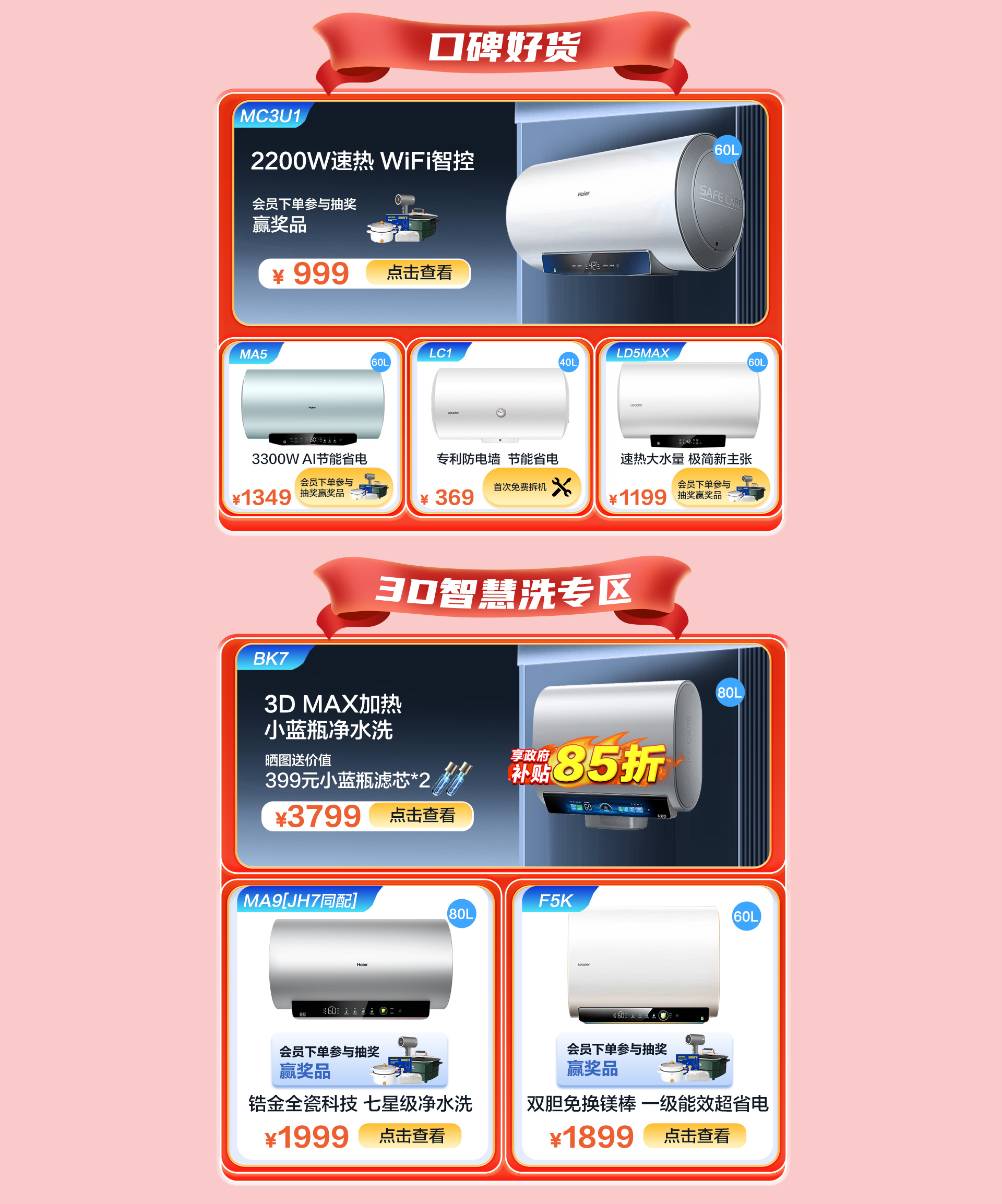 [热卖榜单√]Haier/海尔电热水器EC6002-MG(U1)60升 3000W变频速热 WIFI控制 金刚无缝胆