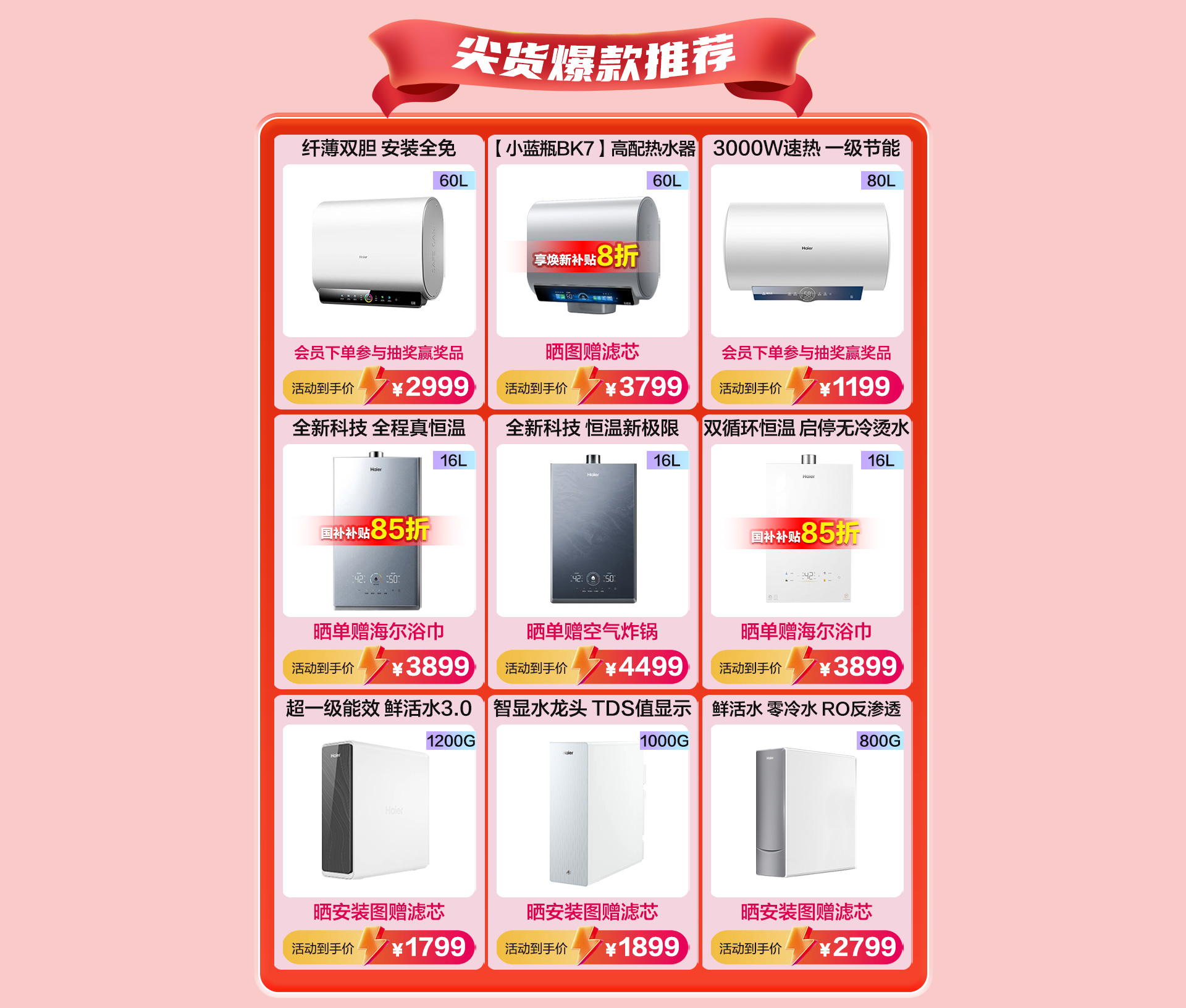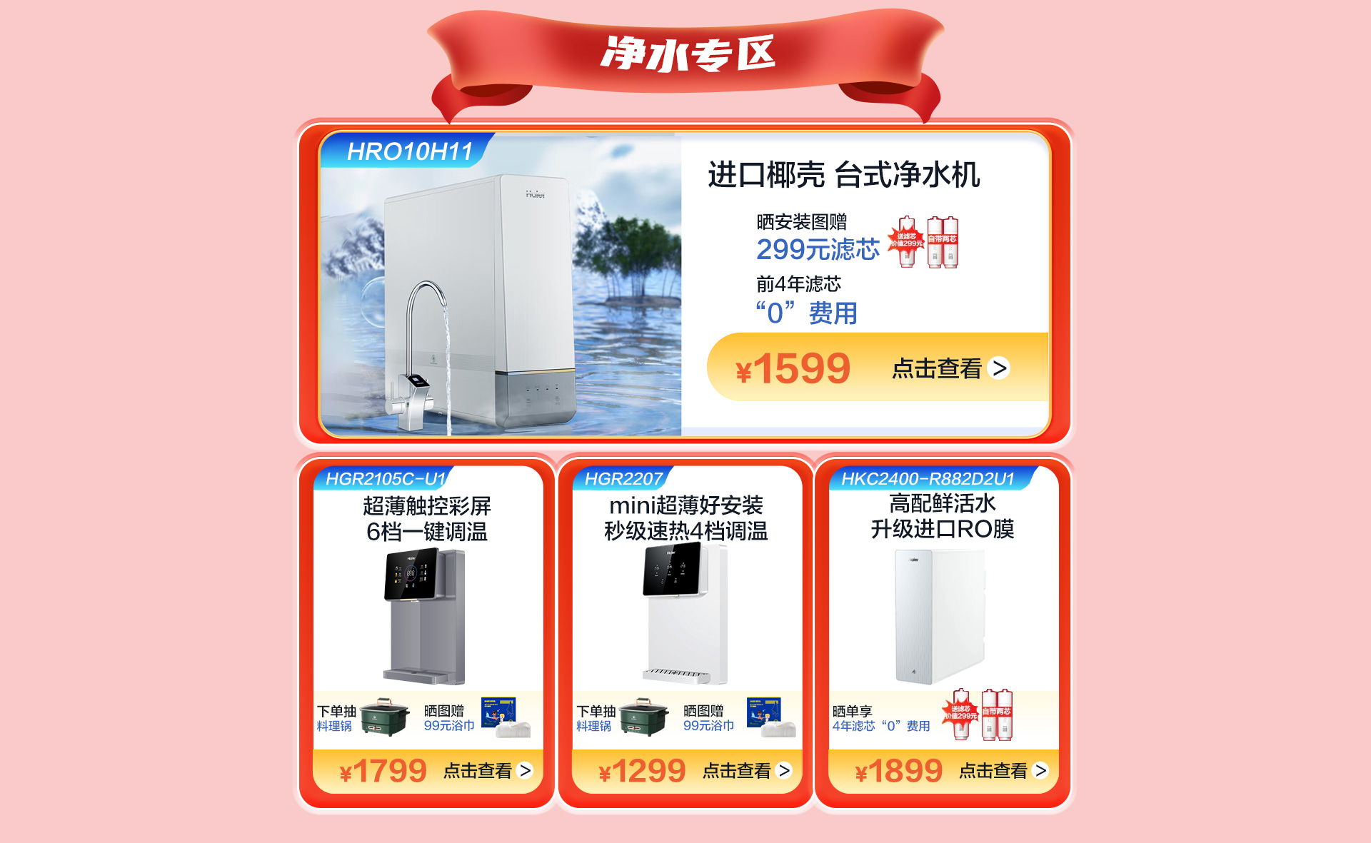 海尔净水器套购 厨下净水器8H11+燃气热水器16ECOU1 全时鲜活无陈水,长效RO膜;冷凝式,双增压零冷水,即开即热